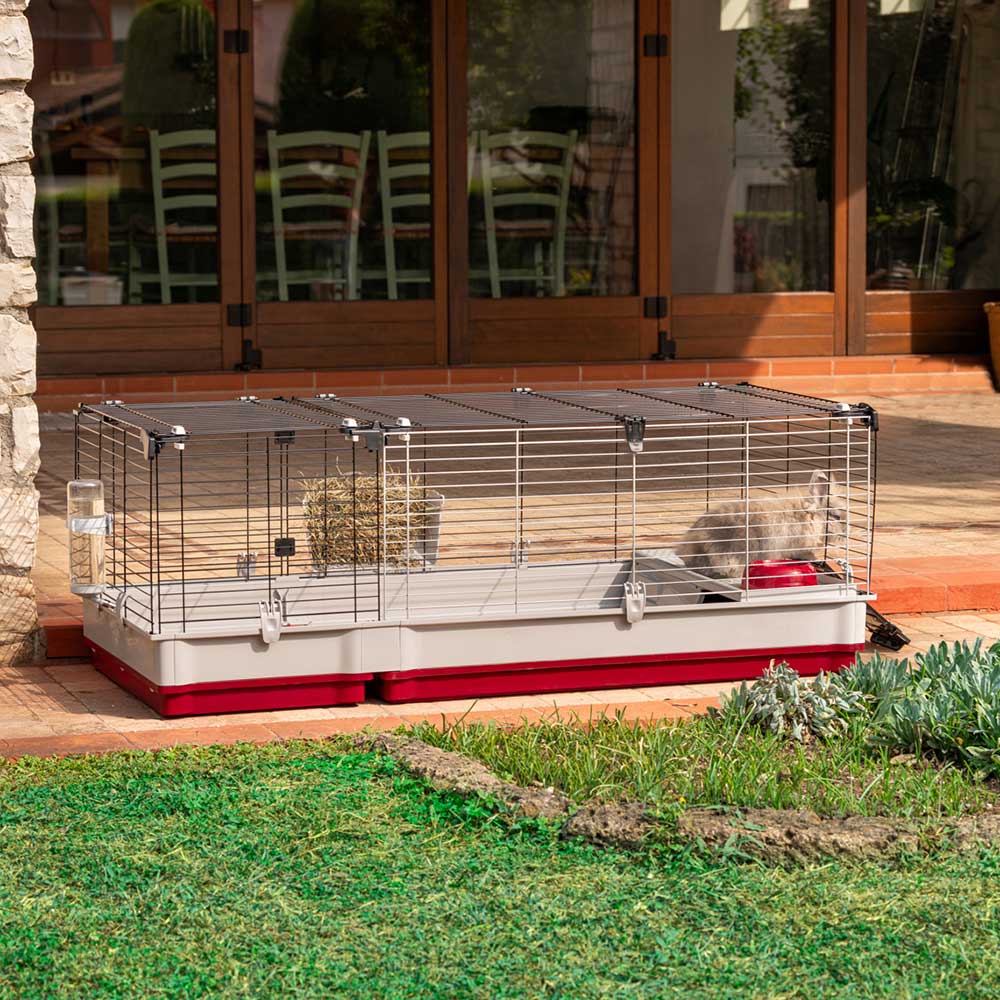 The Krolik 140 model is really large, also ideal for hosting several rabbits together and including all the comforts: inside, it has a comfortable plastic house with bowl, hay feeder and drinking bottle. Furthermore, on the side of the cage, you will find a comfortable ladder that allows the animal to go out and enter independently and move freely around the house. The habitat is complete with an extension of 40 cm in length, separated from the main cage by a special removable grid. This module is ideal for allowing bunnies to build their own nest leaving them all the peace of mind they need.