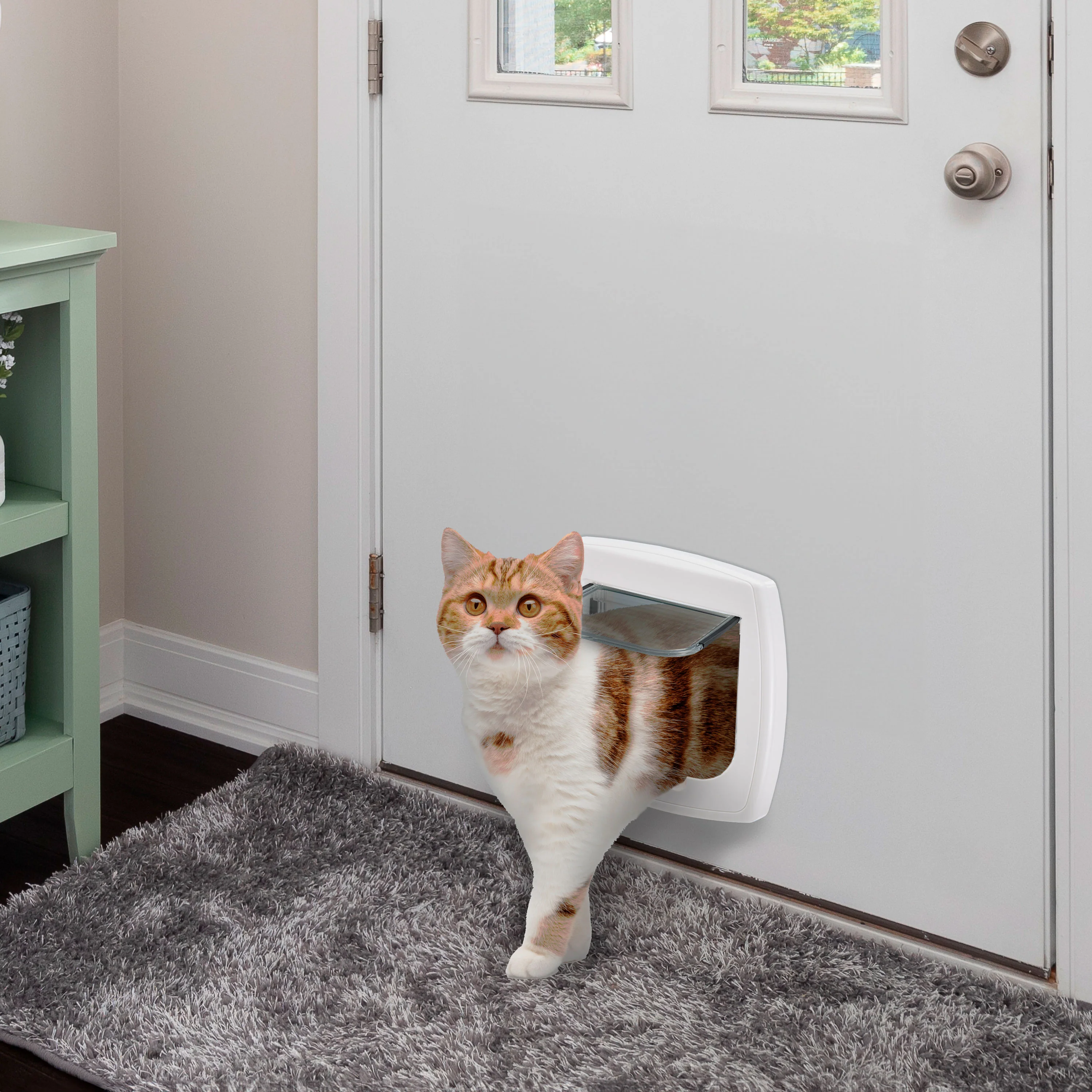 Swing flaps come with the innovative Wind Stopper System, which is a system of protection against draughts (except for the Swing 1 and 3 models). Another important feature is the 4-way locking system (not present in the Swing 1 model) that allows you to adjust the type of opening according to your needs: entry only, exit only, entry and exit, or closed. Lastly, a passage indicator (provided with Swing 5 and 7) will help you to understand whether your pet is indoors or out and consists of a flag, placed on the bottom of the pet flap, which will face the direction in which your furry friend last went. All larger flaps come with a tunnel of 5 cm, allowing them to be adapted to any structure and can be trimmed (the tunnel must not be trimmed in the models Swing 7 and Swing Microchip since they contain a very delicate mechanism).