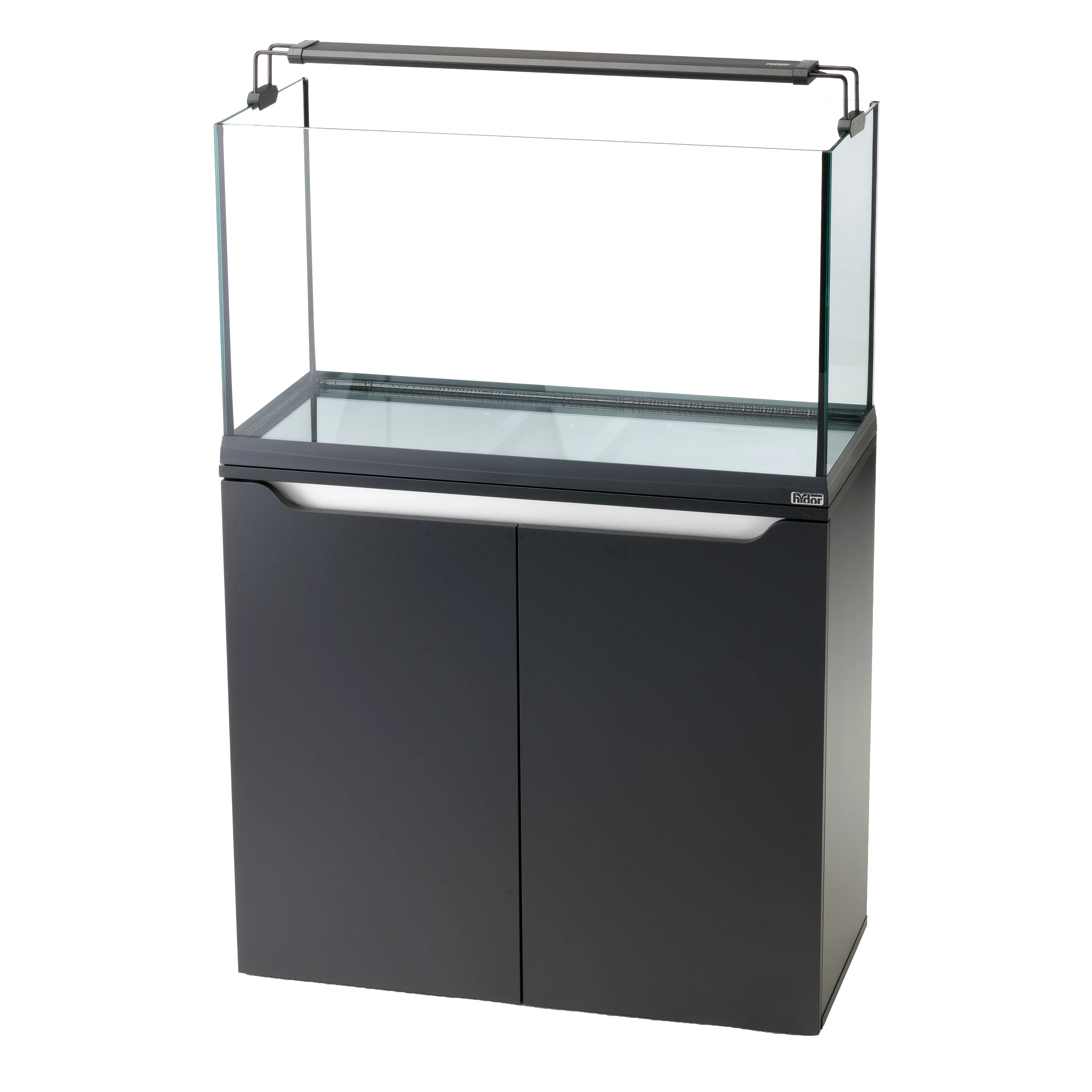 Tank are glass fish tanks made with float glass and silicone which can guarantee watertight integrity. They are ideal for any type of set-ups, open aquariums or aquaterrariums: have fun decorating them according to your tastes and needs! Tanks are available in five different sizes from a minimum of 42 to a maximum of 110 cm in length: Tank 40, 4 mm thickness glass, 21 liter capacity, Tank 50, 4 mm thickness glass, 40 liter capacity, Tank 60, 5 mm thickness glass, 75 liter capacity, Tank 80, 8 mm thickness glass, 120 liter capacity. The larger Tank 110 model has a glass thickness of 8 mm and a capacity of approximately 230 liters, features special high-resistant stainless steel tie.